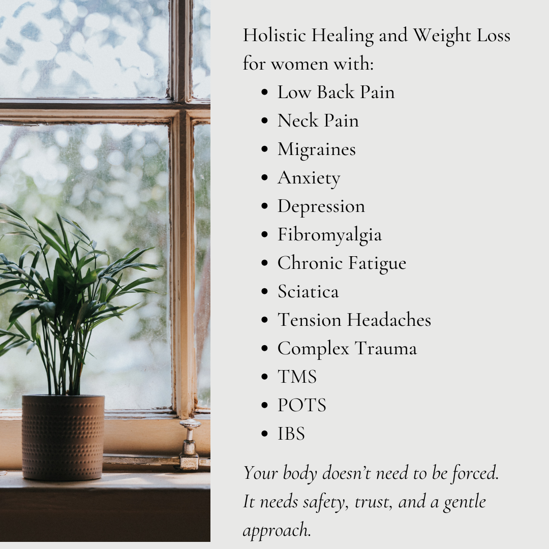 I also know this: Pain and weight gain aren't your fault, but they can be reversed. Your body doesn’t need to be forced and fixed. It needs safety, trust, and a gentle approach.